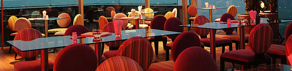 Settle on top floor of World Trade Center, guests may enjoy the inlet to the sea of the Pearl River at a near distance and Humen Bridge at a far distance, thoroughly enjoy the beautiful scenery of Nansha. You may also enjoy the fresh sea breeze on the rest terrace. Here serves Chinese and western foods made by famous chefs; for dinner, it also provides wines and special drinks. You may enjoy the delicate cuisine and the blue sea and sky, thoroughly highlight the noble taste of western culture in the sea breeze.